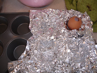 I've had my lovely Easter cupcakes picked out for months. I bought a 2 pound bag of lemons to make some amazing lemon meringue cupcakes. BUT then I came across the most intriguing post over on one of my favorite blogs cupcake project. They had themselves some cupcakes baked in egg shells. YES egg shells. I stopped dead in my tracks and was amazed! Who would have thought? Right? So since this seemed a lot more interesting than carrot or lemon cupcakes I started my hunt for the number one item on my list-speckled eggs. I really didn't think they would be that hard to find since Martha uses them and all. WRONG!!!! I checked every freakin store and one egg farm in town and found nothing close to speckled eggs. The closest thing I came too was brown eggs with slight spots on top. I gave up and just bought some brown eggs at Freddy's. Now onto the second part of this baking extravaganza the batter. What should I use? I started off with some red velvet dyed purple... Yes the batter was purple but after it's baked it looked like plain chocolate cupcakes. This was not good enough so on to the second plan-marble cupcakes-which is vanilla and chocolate batters separated and then swished together to make a pretty pattern. Perfect! Other than over filling these suckers they turned out great. The only thing I would do differently is some how give them a filling. Maybe next time... Anyways grab some lovely eggs and you're favorite cupcake recipe and give these a try. They will be a huge hit!